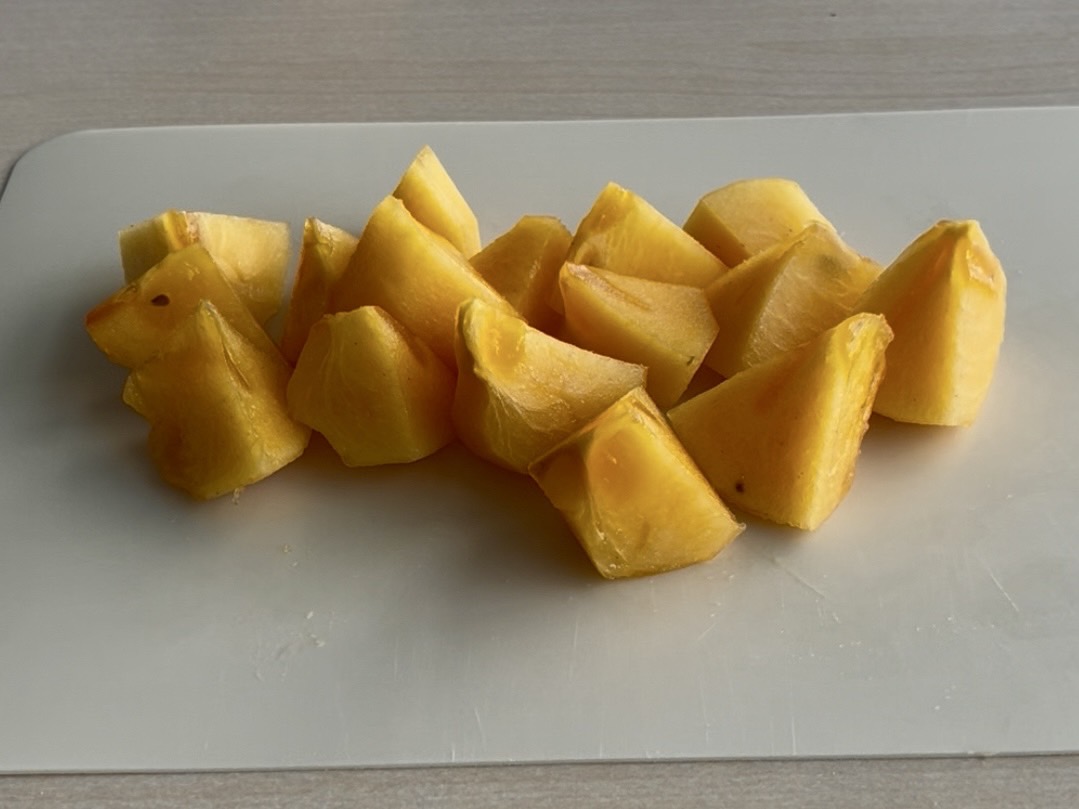柿の皮をむいて、ミキサーに入れやすい大きさに切る。