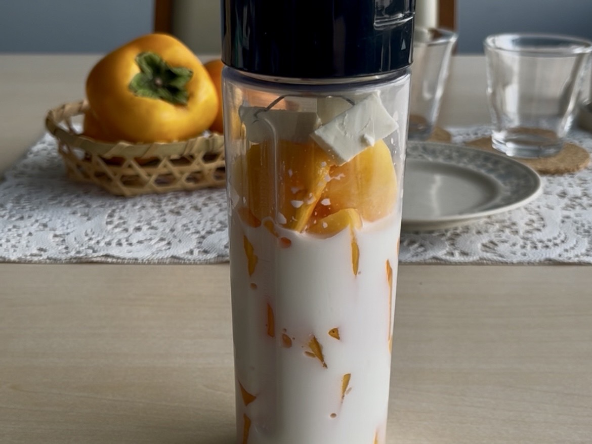 手順①の柿、牛乳、クリームチーズ、氷を入れて、滑らかになるまで撹拌する。