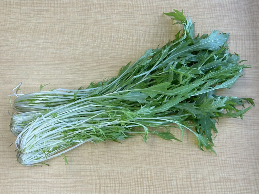 水菜は葉に深い切れ込みがあり、シャキシャキとした食感でクセのない味が特徴です。